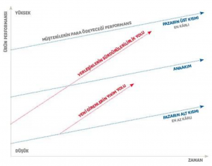 Yıkıcı inovasyonu kulağa biraz karışık gelebilir.Grafik üzerinde anlatmak gerekirse,